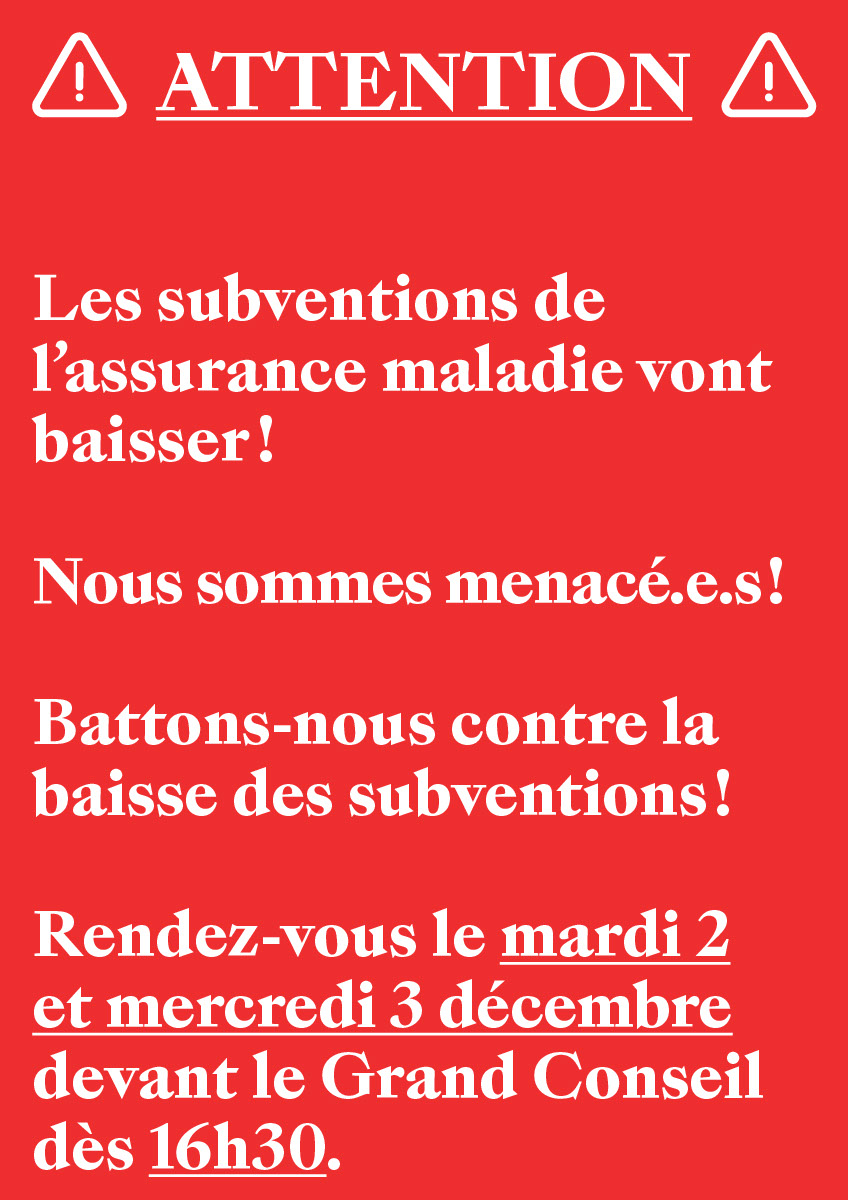 Rendez-vous le mardi 2 et mercredi 3 décembre devant le Grand Conseil dès 16h30.